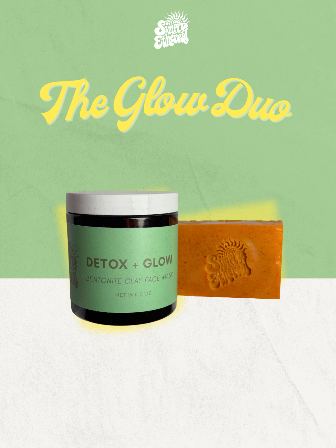 The Turmeric Soap Bar and Detox + Glow Bentonite Clay Mask work together to deeply cleanse, refresh, and reveal a healthy-looking glow. Formulated to support clearer, smoother, more radiant skin, this powerhouse pair is perfect for elevating your self-care routine.